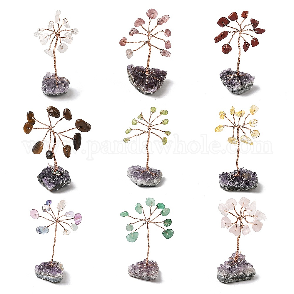Украшения из натурального драгоценного камня дерево жизни, аметистовая основа с медной проволокой, фен-шуй энергетический камень подарок для домашнего офиса украшение рабочего стола
