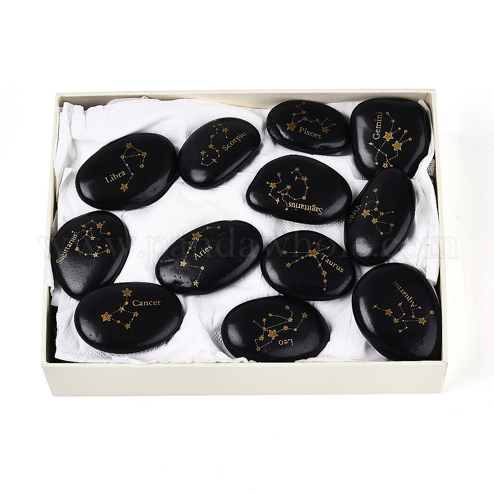 12шт. образцы натурального черного камня с изображением созвездий, золотой металл обвитыми, Целебный кристалл в подарок для домашнего декора, с бумажной коробкой