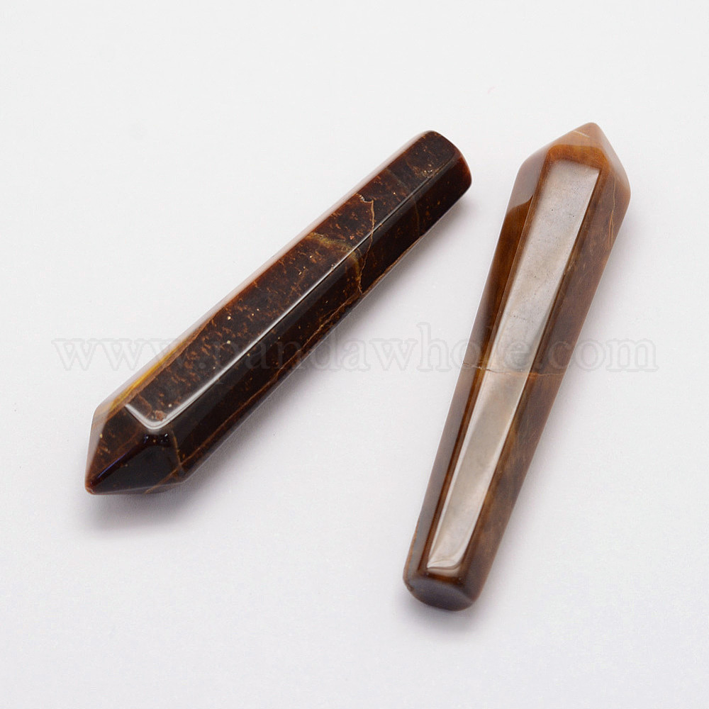 • Тигровый глаз Шестиугольные заостренные украшения из натурального тигрового глаза, исцеляющие каменные палочки, для медитативной терапии чакры рейки деко, пуля, 50~53.5x11x10 мм