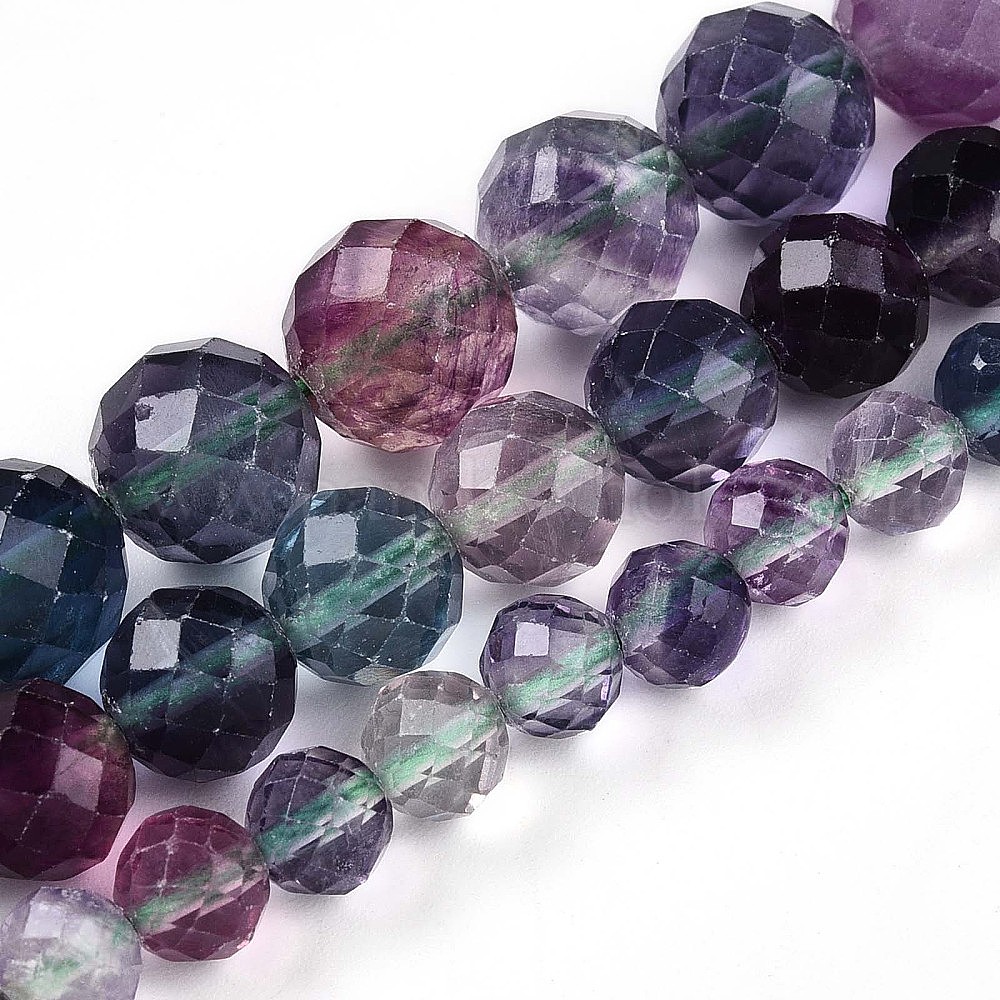 • Флюорит Естественные радужные бутиковые бусины, круглый с гранями, 6~6.5x6~6.5 мм, отверстие : 0.9 мм, около 63 шт / нитка, 15.35'' (39 см)