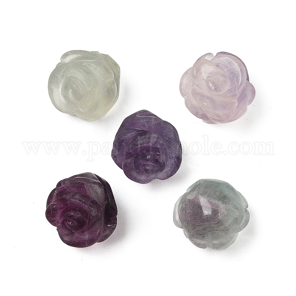 • Флюорит Натуральные красочные флюоритовые бусины, роза, 11.5~12.5x12~12.5x8~9 мм, отверстие : 1 мм