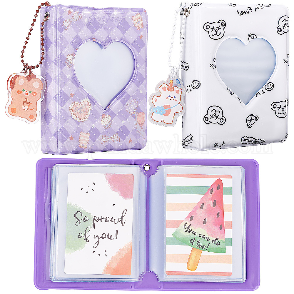 • (52) Непрозрачная лаванда 2 книги 2 выкройки 3 дюймовый ПВХ мини-фотоальбом с окошком в форме сердца, с 2шт 2 стили вырезать медведь акриловый кулон брелок, разноцветные, альбом: 110x81x26.5мм, отверстие: 4 мм; брелок: 85~94 мм