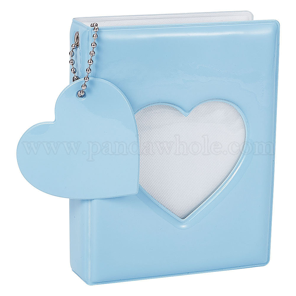 • Светло-Голубой 3 дюймовый ПВХ мини сердце полая фотокарточка держатель книга, мини-зеркальный фотоальбом с 32 карманами и шариковой цепочкой, Небесно-голубой, 110.5x87x27 мм, отверстие : 3.5 мм, внутренний диаметр: 92x61 мм
