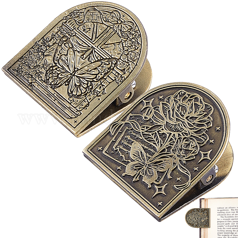 2 наборы 2 стили декоративные зажимы для папок из цинкового сплава в тибетском стиле, металлические зажимы для книг для держателя страниц журнала, офисные принадлежности, античная бронза