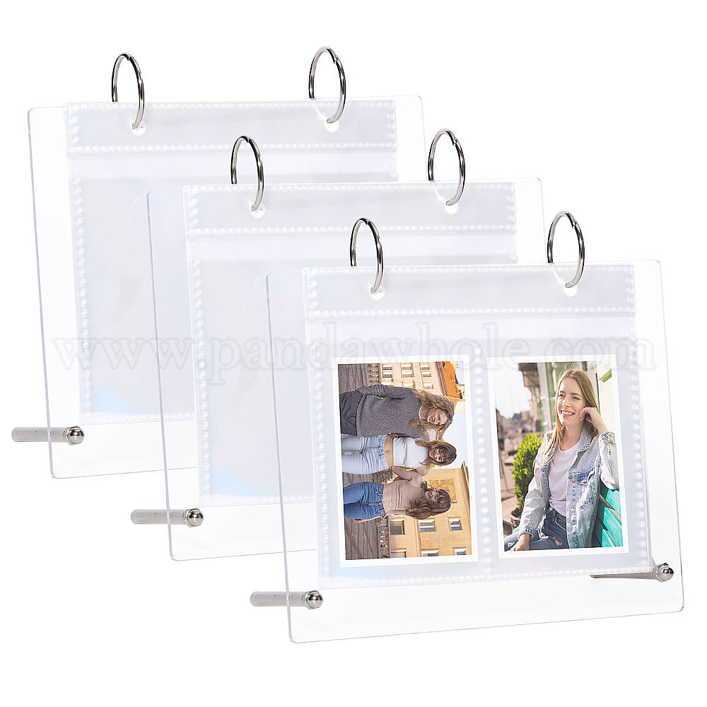 • Прозрачный 3 дюйм 10 карманы акриловый календарь фотоальбом, настольная мини фото подставка, прямоугольные, платина, прозрачные, 67x165x160 мм