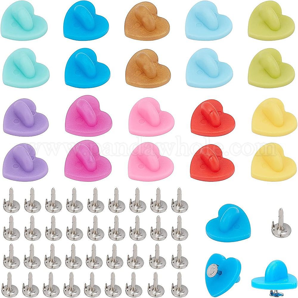 150 шт. 10 цвета, пластиковые значки с отворотом в форме сердца, спинка, вкладыши штифтов муфты бабочки, с латунными булавками для галстука, шт. фурнитура для броши