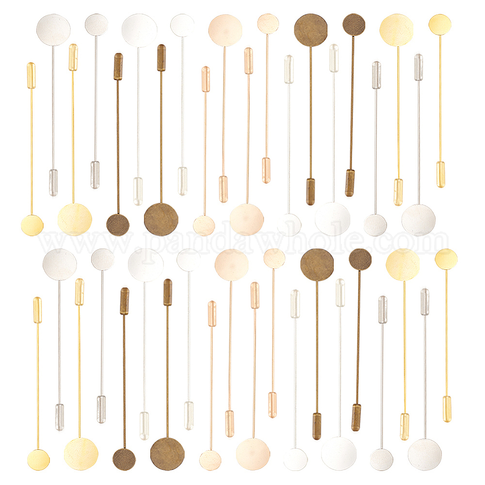 40 наборы 10 стиль латунные булавки-основания, с поддоном, плоско-круглые