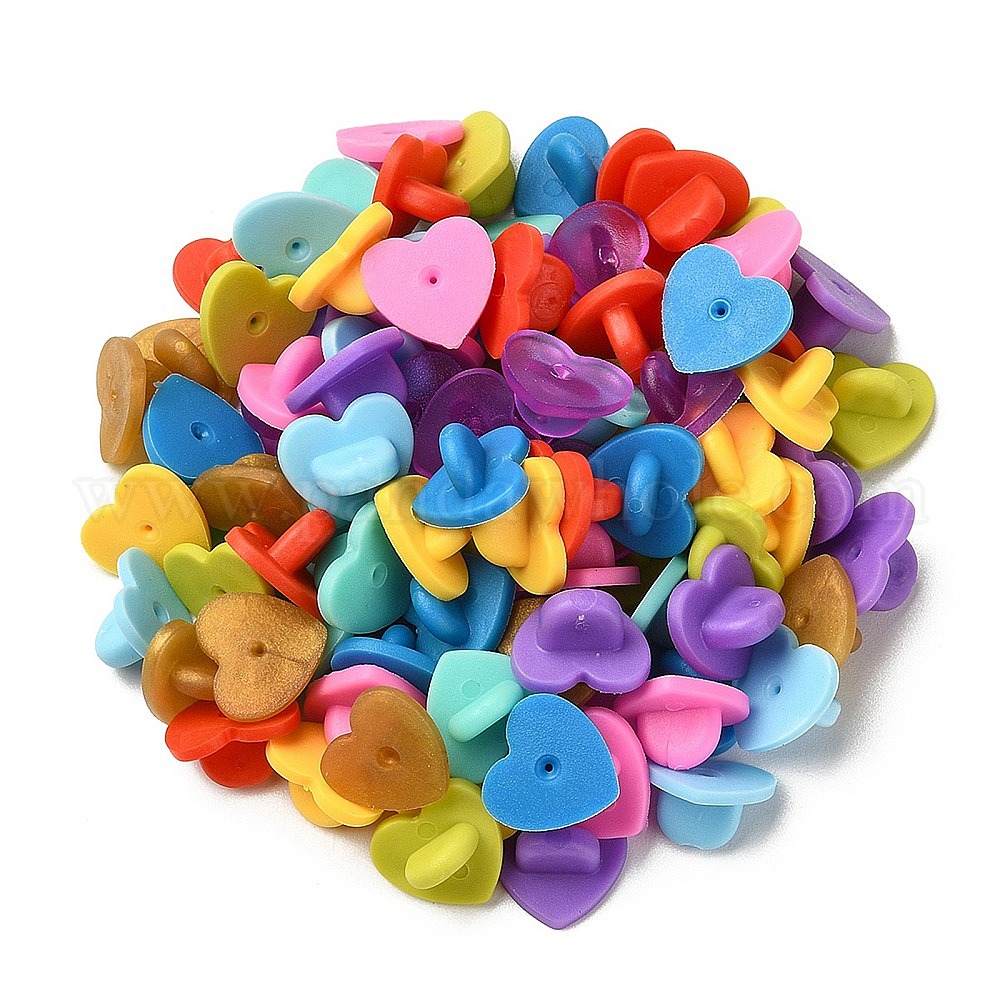 100 шт. 10 цвета, пластиковые значки с отворотом в форме сердца, спинка, обратные стороны булавки сцепления бабочки для замены униформы значка