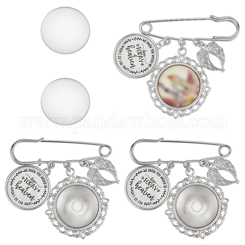 3шт. фурнитура для броши из сплава, со стеклянной кабошон, плоско-круглые