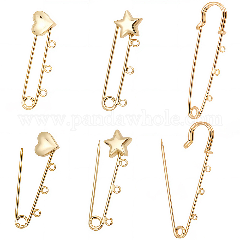 • Настоящее золото 18K 6шт. 3 стили фурнитуры для латунных брошей, долговечный, реальный 18 k позолоченный, 11~50x15~37.5x4~5 мм, отверстие : 1.4~2 мм, 2 шт / стиль