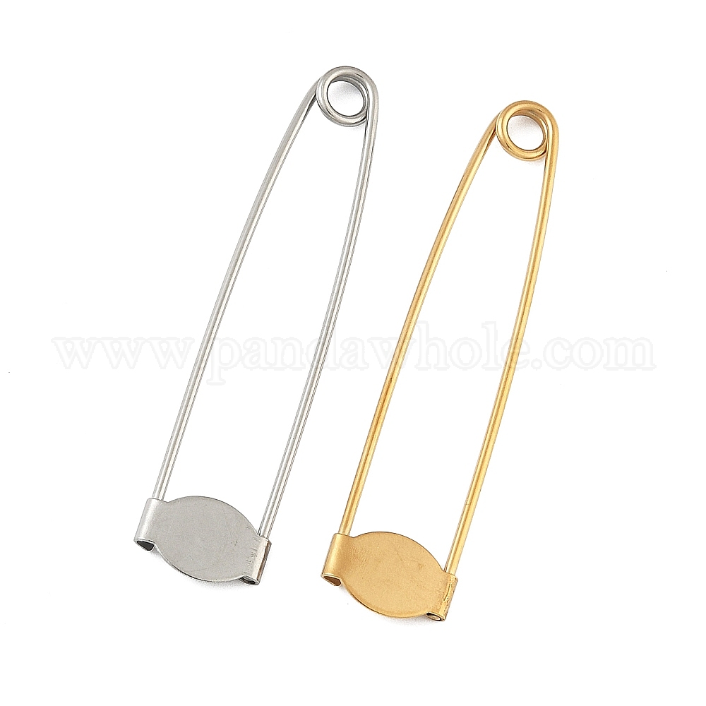 • Золотой 304 Основание для броши из нержавеющей стали в виде английской булавки, с прокладками, ионное покрытие (ip), плоско-круглые, золотые, 71.5x16x4.5 мм, отверстие : 5 мм, Размер лотка: 16x10 мм