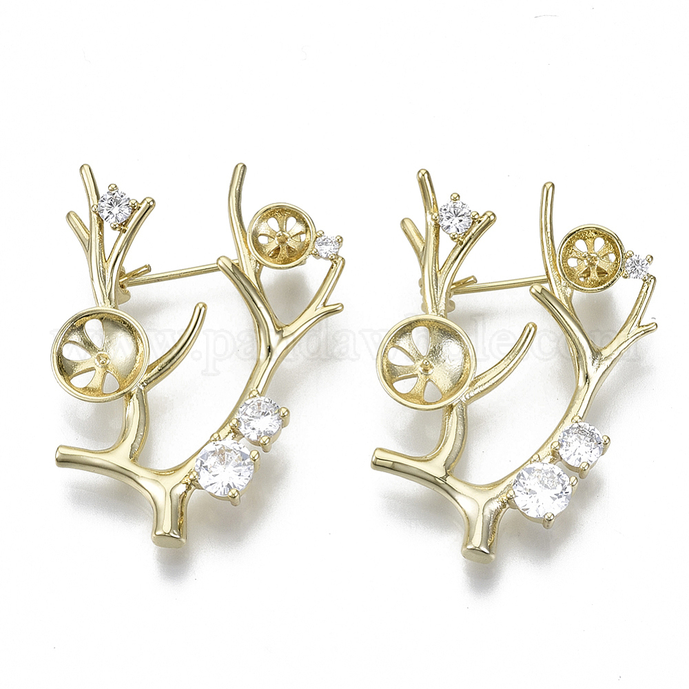 • Настоящее золото 18K Брошь из латуни с прозрачным фианитом, за половину пробурено бисера, листовые ветви, без никеля , реальный 18 k позолоченный, 38x30 мм, штифты : 0.9 мм
