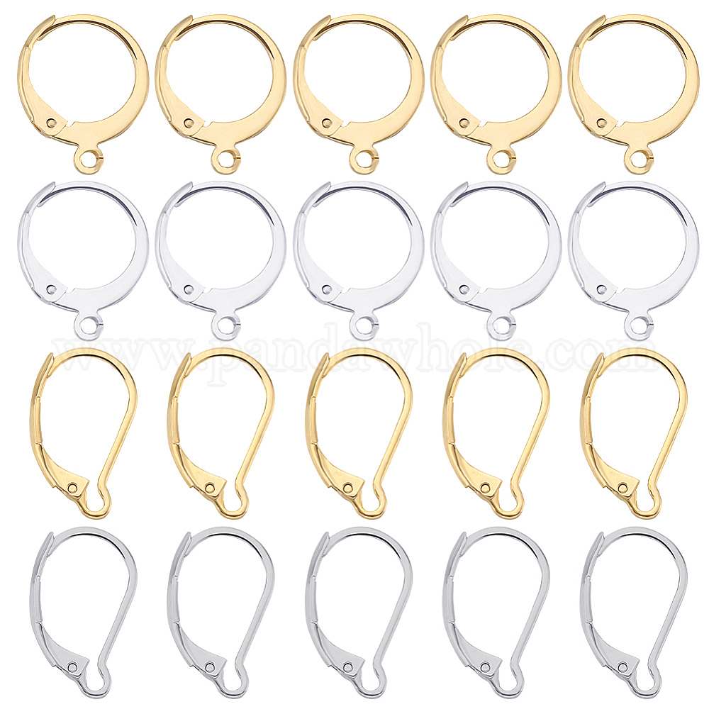 • Золотой & Цвет Нержавеющей Стали 80шт 4 стиль 304 фурнитура для сережек из нержавеющей стали, с петлями, золотые и нержавеющая сталь цвет, 14.5~16.5x10~12x2 мм, штифты : 0.6~1 мм, 20 шт / стиль