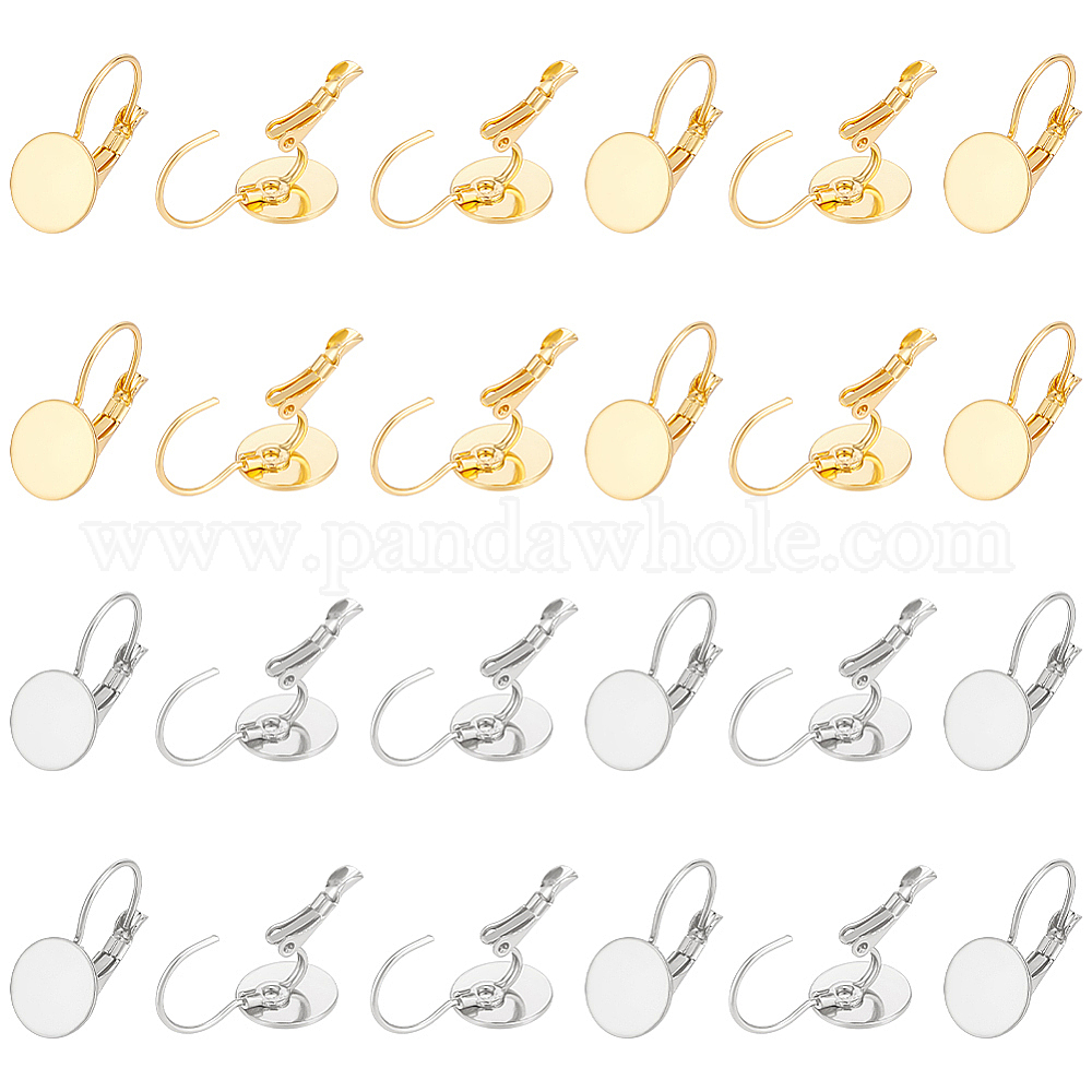 40шт 2 цвета 304 фурнитура для серег из нержавеющей стали, плоские круглые серьги в оправе под кабошон
