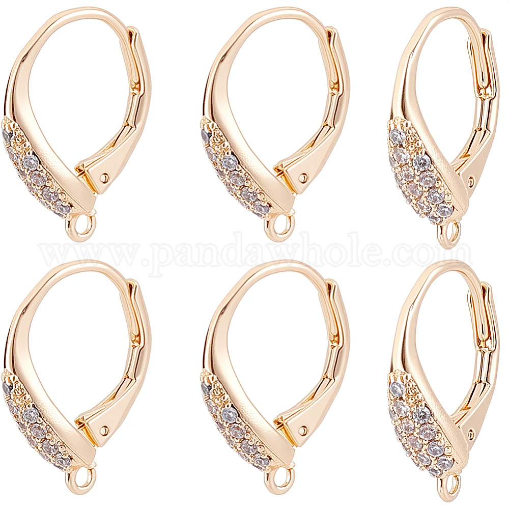 10шт. латунная фурнитура для сережек с кубическим цирконием, с петлей
