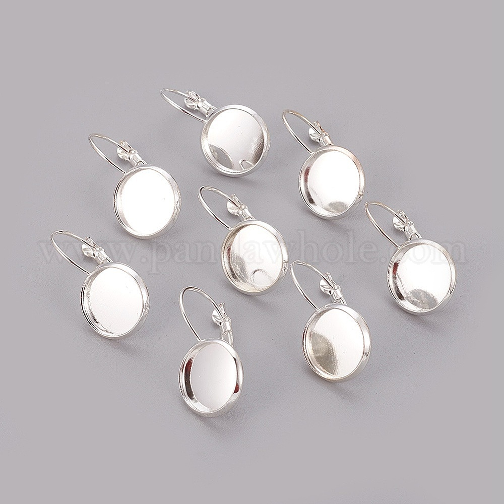 Латунная фурнитура Leverback для серег, с плоской круглой лоток, лоток : 12 мм, 27x14 мм, штифт: 1 мм