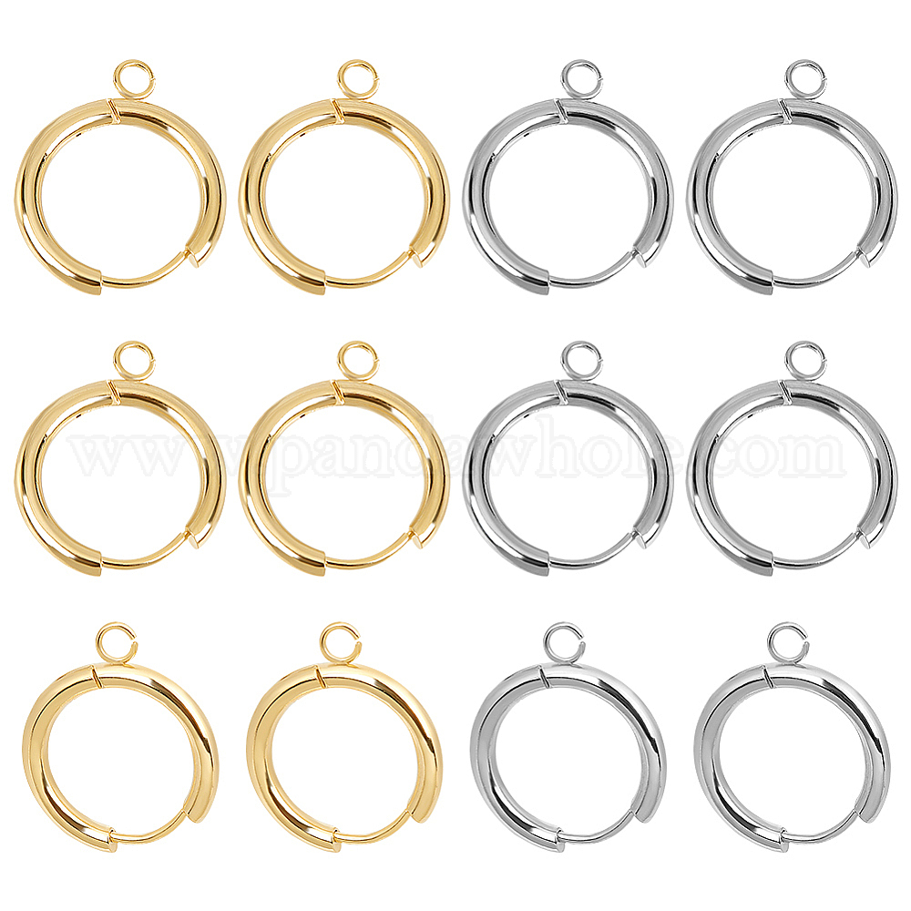 • Real 24K Gold Plated & Stainless Steel Color 12 шт. 2 цвета 201 фурнитура для сережек-обручей из нержавеющей стали, с горизонтальными петлями и 316 штифтами из хирургической нержавеющей стали, реальный 24 k позолоченный и цвет нержавеющей стали, 21x19x2.5 мм, отверстие : 2.5 мм, штифты : 1 мм, 6 шт / цвет