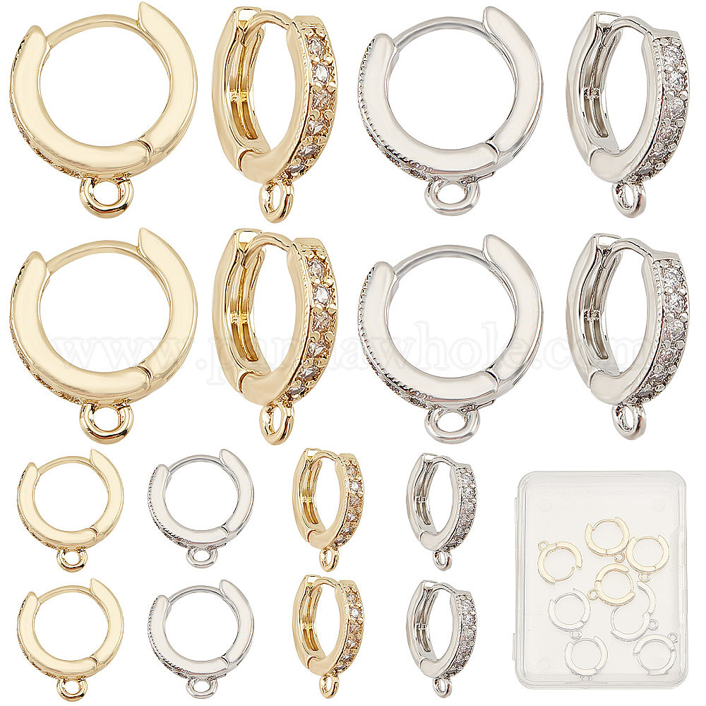 12 шт. 2 цвета латунные серьги-кольца Huggie, с прозрачным кубическим цирконием и горизонтальными петлями