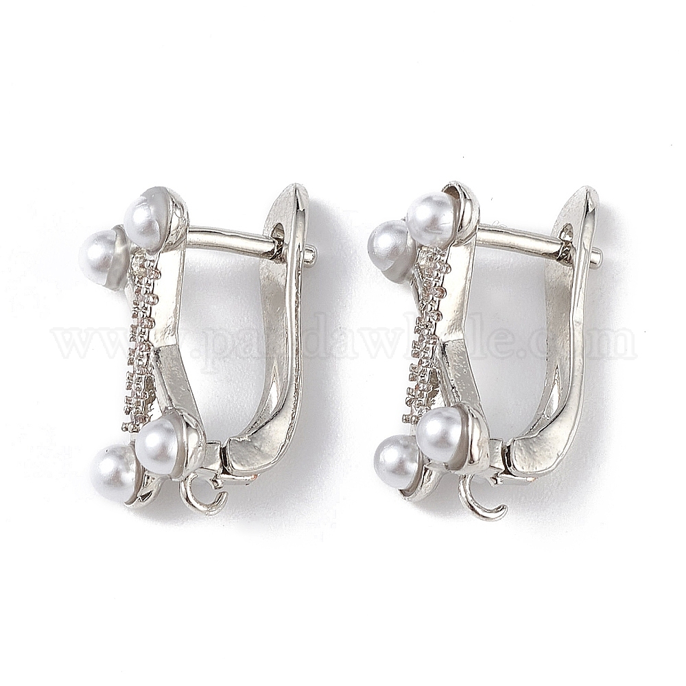 Фурнитура для латунных сережек с крест-накрест, задняя защелка с прозрачным кубическим цирконием и пластиковым жемчугом, без свинца и без кадмия