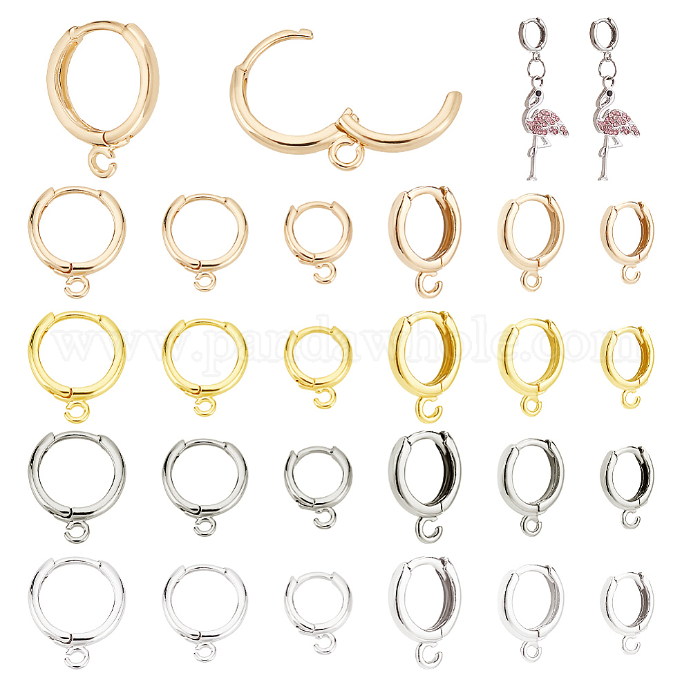 24 шт. 12 стили латунные серьги-кольца Huggie Hoop фурнитура, с горизонтальными петлями