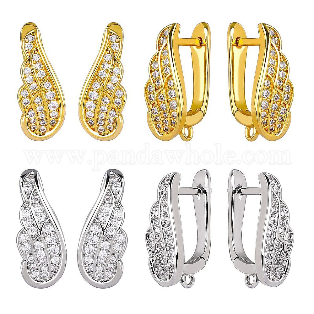 4 пары 2 цвета реечное покрытие латунь микро паве кубический цирконий серьги-кольца фурнитура, защелка назад закрытие, с вертикальными петлями, крылья, без кадмия и без свинца