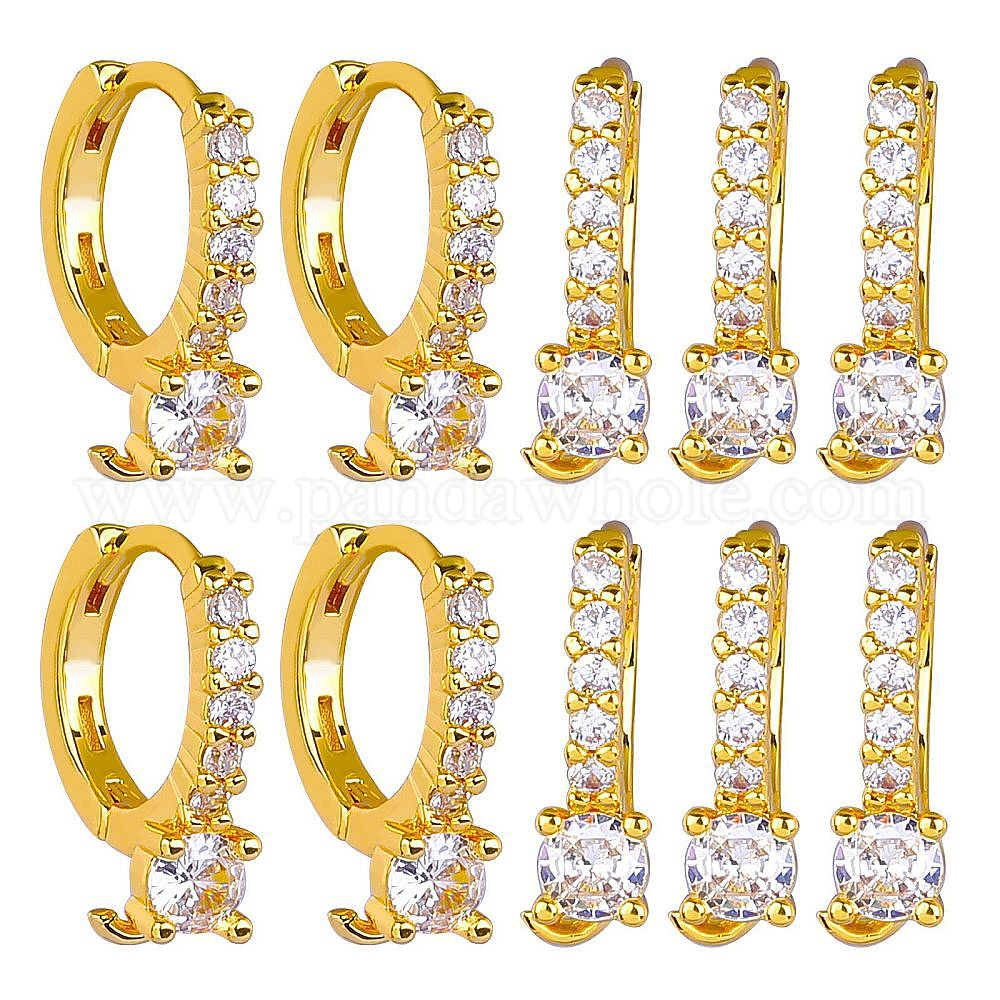 10 шт. латунная фурнитура для серег-кольцов из прозрачного кубического циркония с микропаве, с вертикальными петлями (02JMB6)