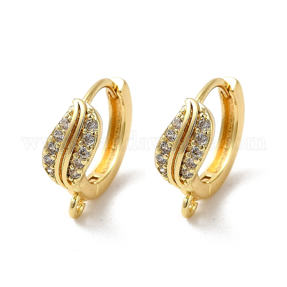 • Золотой Серьги-кольца в форме листа с покрытием из латуни с микропаве и кубическим цирконием, проволока для ушей с петлями, без кадмия и без свинца, долговечный, золотые, 18 датчик, 14.7x14.2x5.4 мм, отверстие : 1 мм, штифты : 1 мм