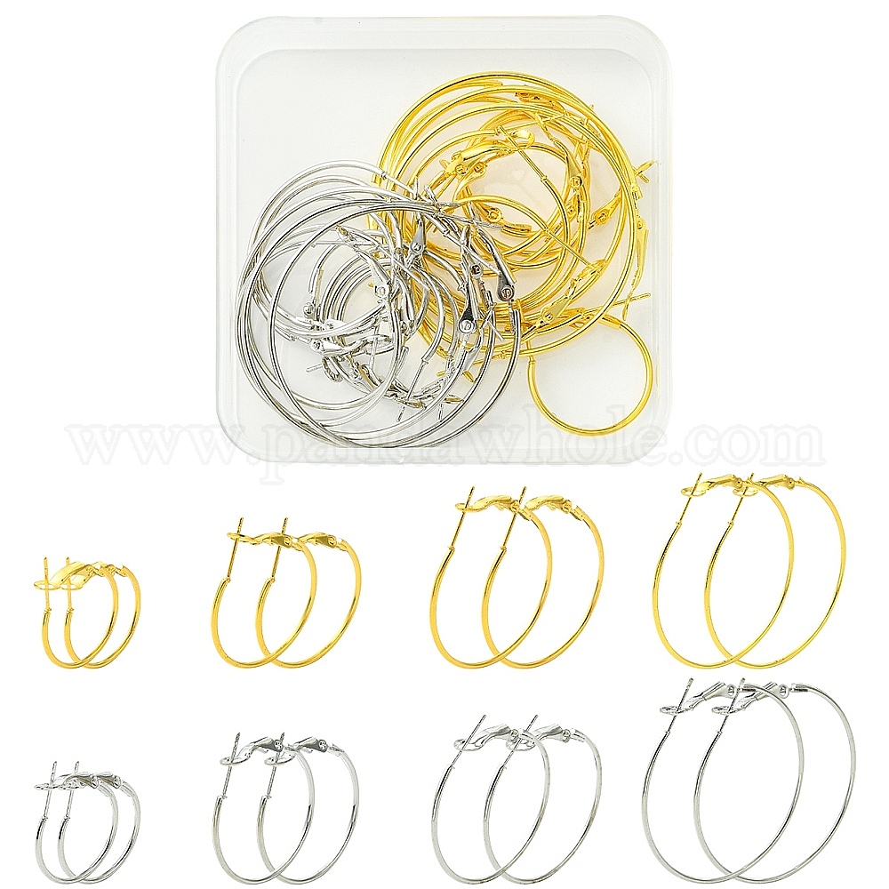 железные серьги-кольца выводы: около 22 калибр, 30x1.3 мм, штифты : 0.6 мм, 2 цветов, 3 шт / цвет, 6шт;