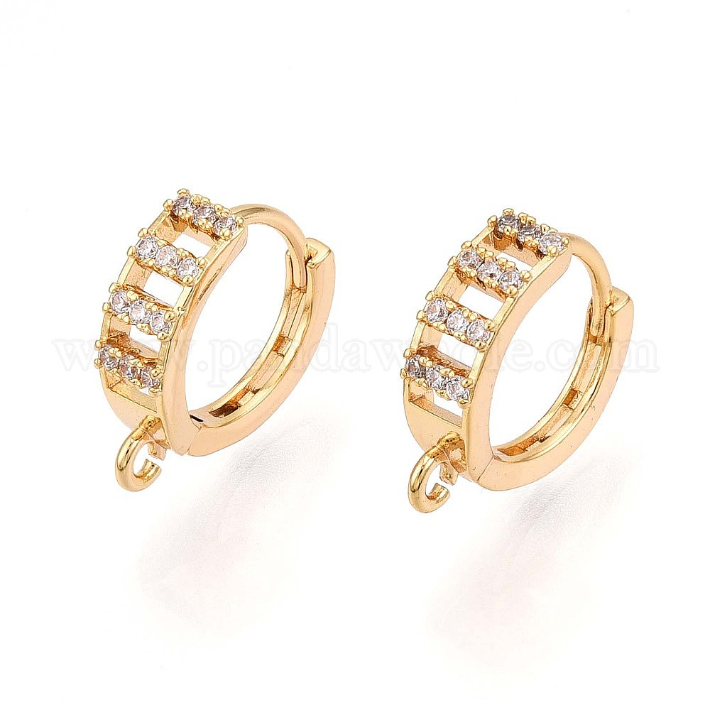 • Настоящее золото 18K Латунный микропаве кубический цирконий кольцо серьги фурнитура, без свинца, без никеля и без кадмия, кольцо, реальный 18 k позолоченный, 15x14x4.5 мм, отверстие : 1.5 мм, штифты : 0.8 мм