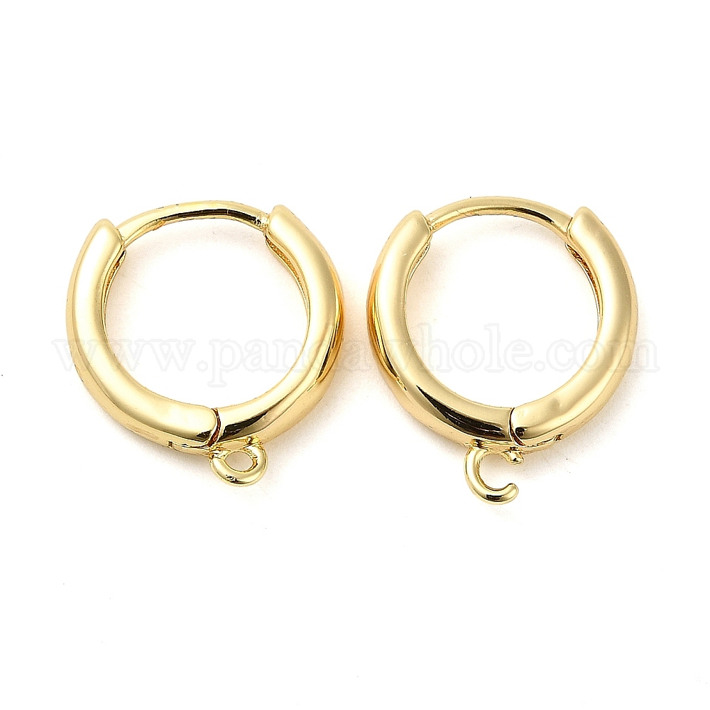 • Настоящее золото 18K Латунные серьги обруча, серьги обруч Huggie находка, долговечный, с горизонтальной петлей, кольцо, реальный 18 k позолоченный, 16x15x2~4 мм, отверстие : 1.2 мм, штифты : 1 мм