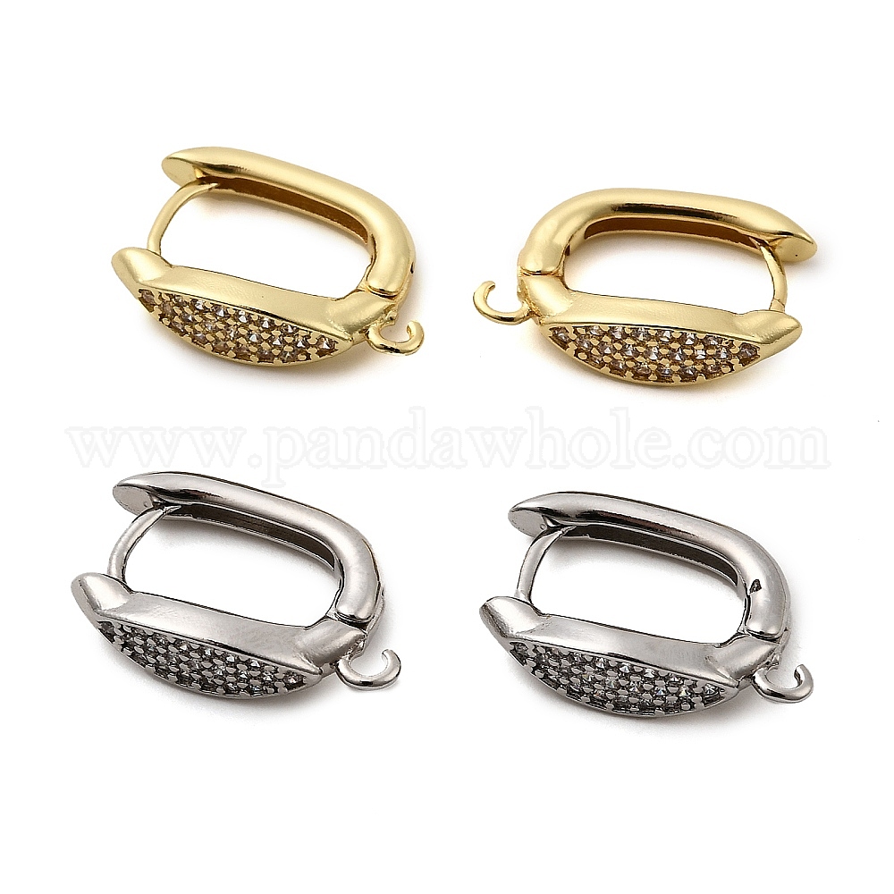 Фурнитура для сережек-колец из латуни с микропаве из кубического циркония в форме конского глаза, стойки покрытие, долговечный, без кадмия и без свинца, с петлей