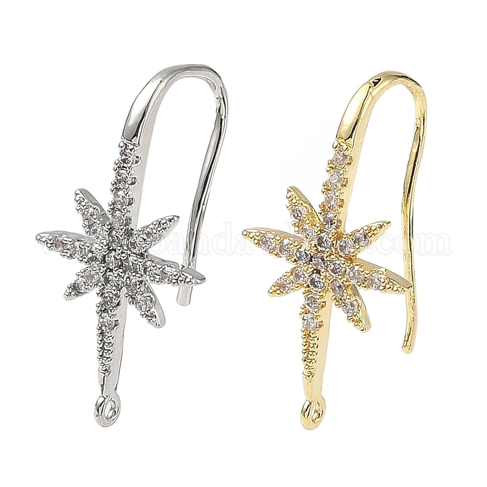 Латунные серьги-кольца из прозрачного кубического циркония, звезда