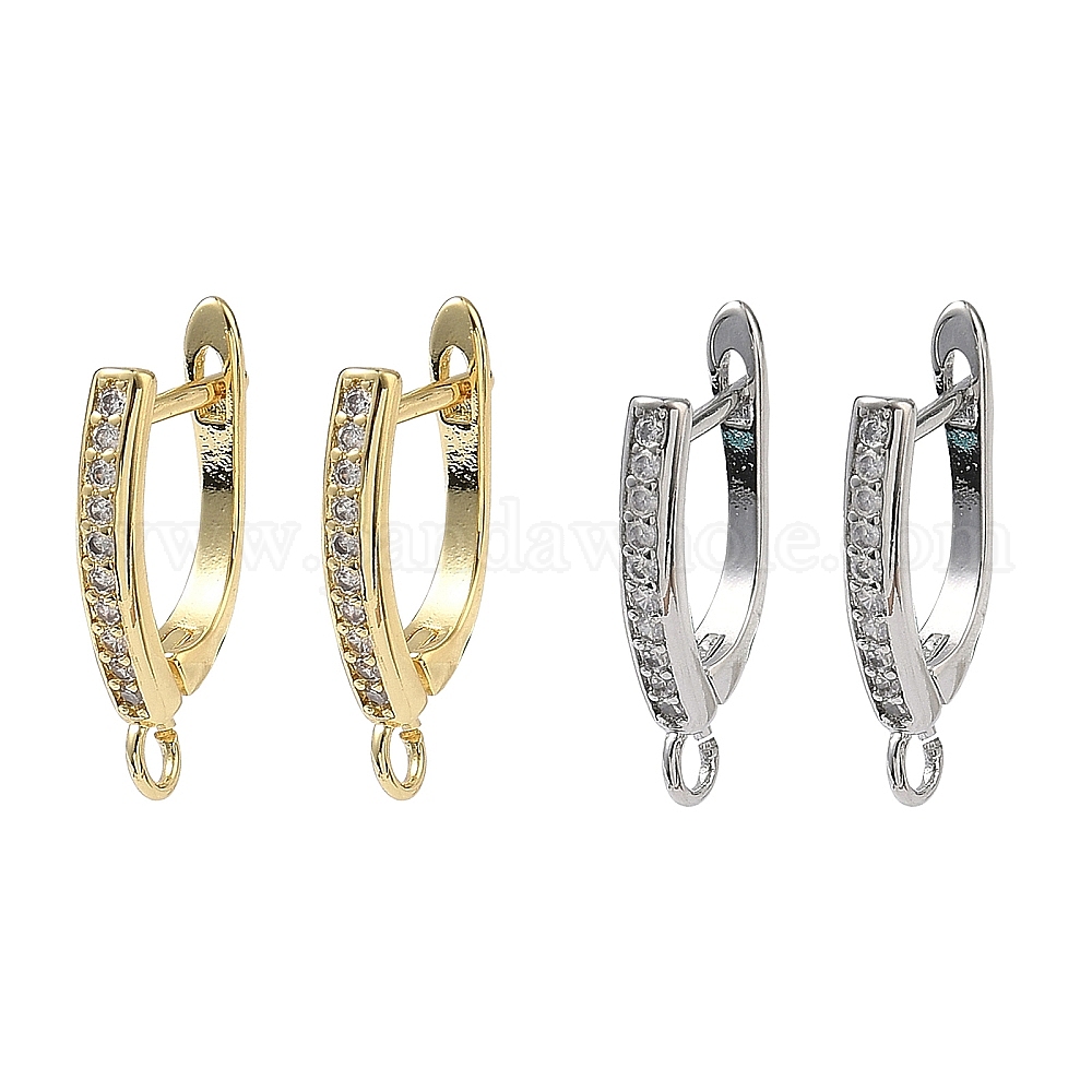Латунные серьги-кольца из прозрачного кубического циркония, защёлка с петлёй, долговечный, стойки покрытие, без свинца и без кадмия (03A8GG)