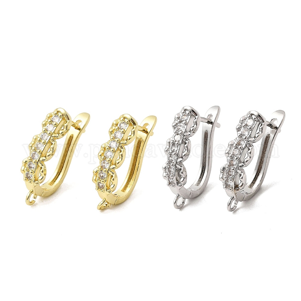 Плоские круглые латунные серьги-кольца с микропаве из прозрачных кубических цирконий., с горизонтальными петлями, запереть