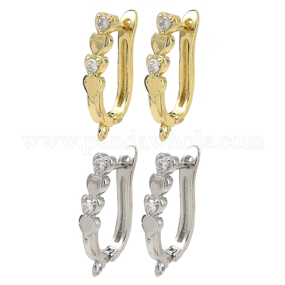 Фурнитура для сережек в форме сердца из латуни с микропаве и прозрачными кубическими циркониями, без кадмия и без свинца, стойки покрытие, долговечный, защёлка с петлёй