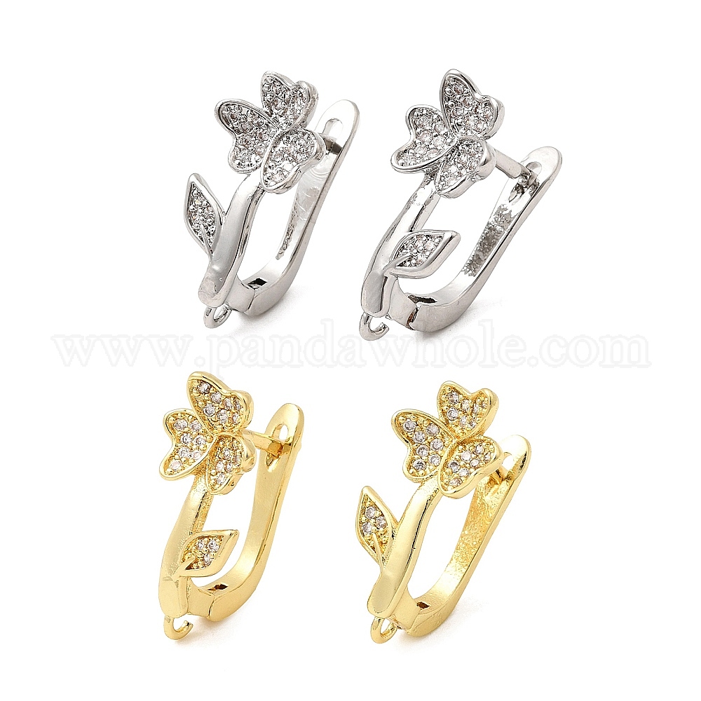 Фурнитура для сережек-колец из латуни с микропаве и прозрачными кубическими циркониями, долговечный, защёлка с петлёй