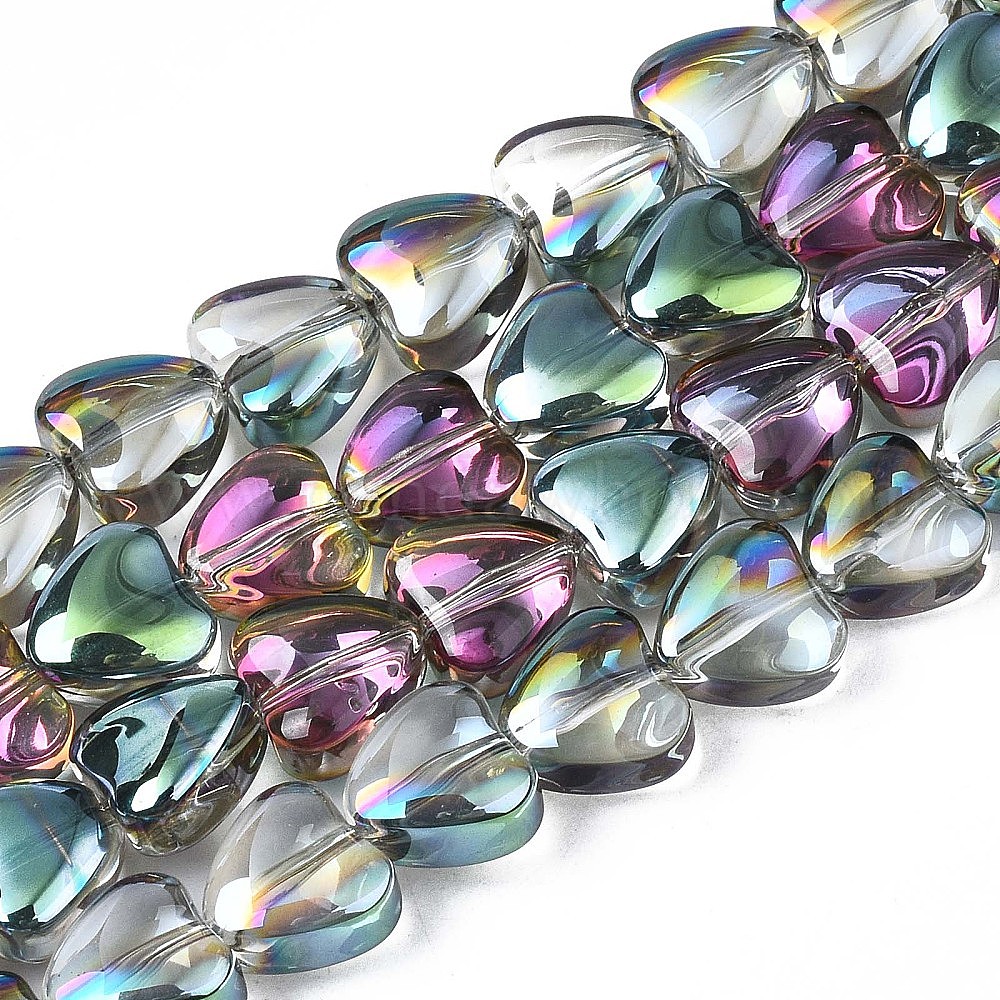 Стеклянные бусины с гальваническим покрытием , с половиным покрытием, сердце