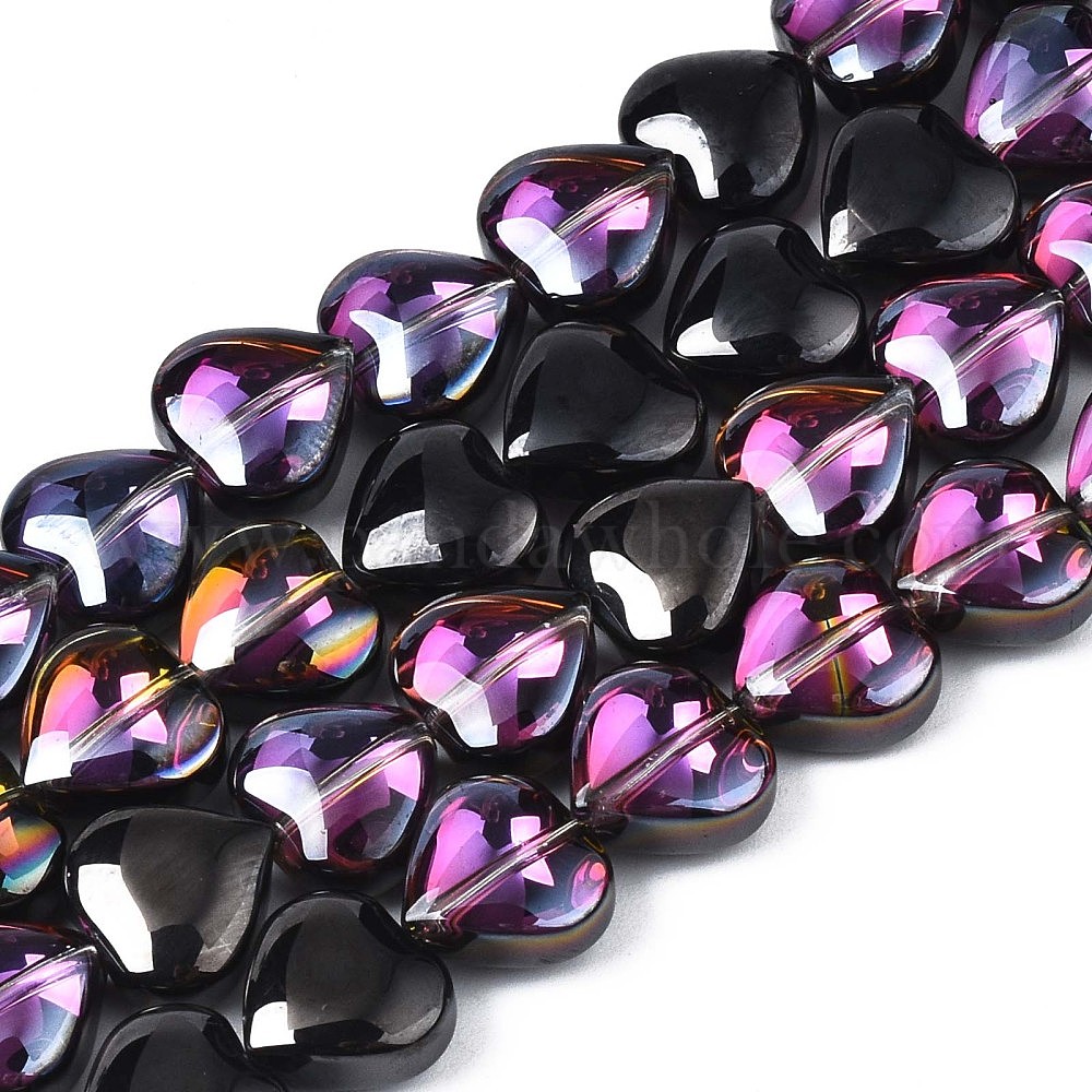 • С Фиолетовым Покрытием Стеклянные бусины с гальваническим покрытием , с половиным покрытием, сердце, с фиолетовым покрытием, 9~10x10x5.5 мм, отверстие : 0.8 мм, около 70~71 шт / нитка, 25.20 дюйм ~ 26.38 дюйм (64~67 см)