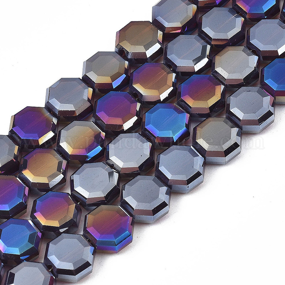 Стеклянные бусины с гальваническим покрытием , с покрытием AB цвета, граненые, восьмиугольник