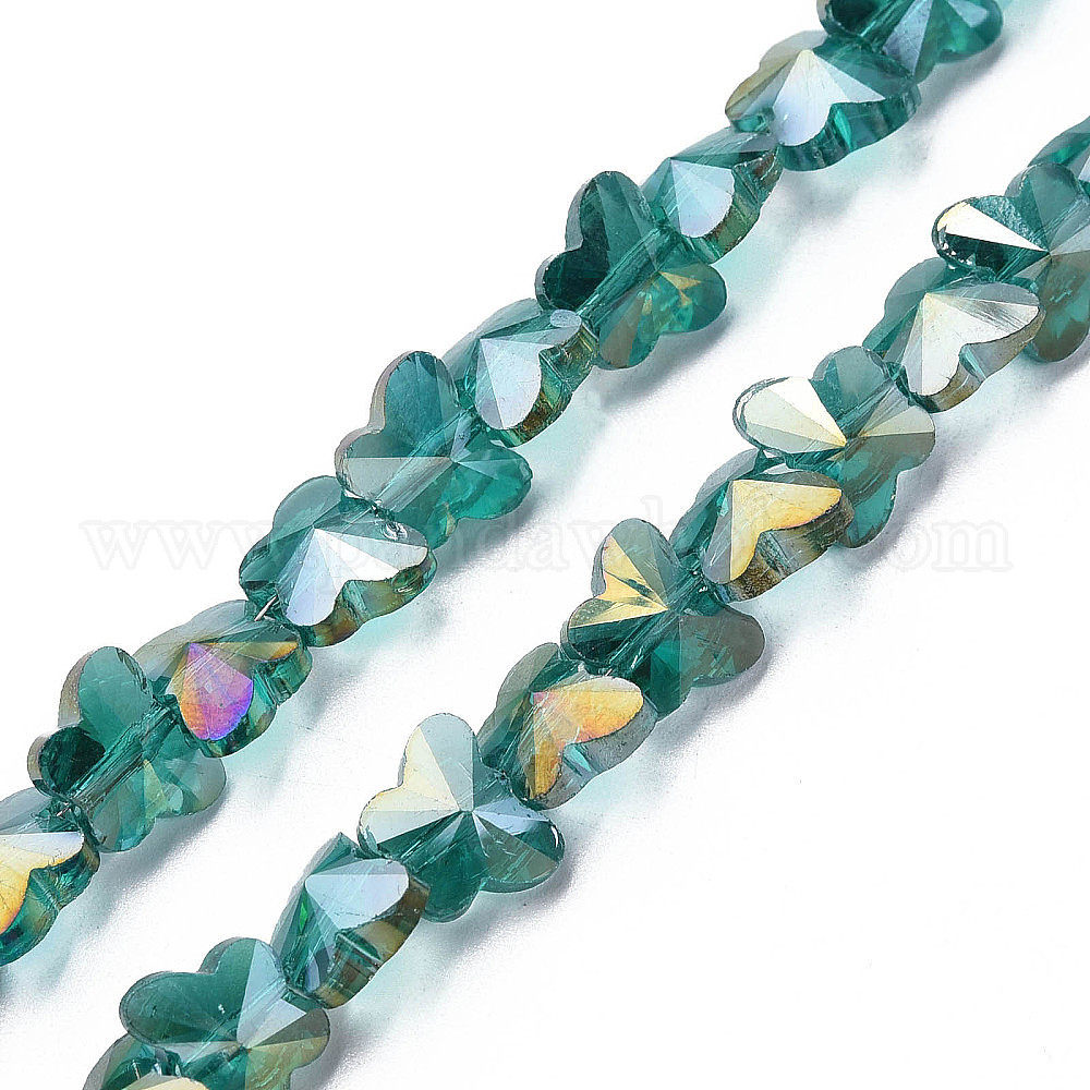 • Светлый Морско-зеленый Гальванизируйте прозрачное стекло бисер нитей, с покрытием AB цвета, граненые, бабочка, светло-зеленый, 8x10x6 мм, отверстие : 1 мм, около 95~100 шт / нитка, 27.16~28.74 дюйм (69~73 см)