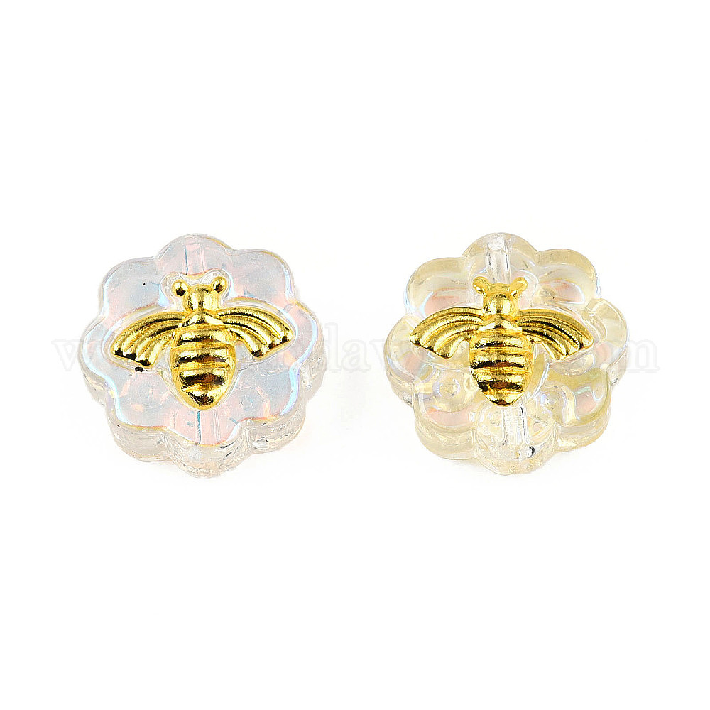 Гальванизируйте прозрачные стеклянные бусины, AB цвет, с латунной фурнитурой золотого цвета, цветок с пчелами