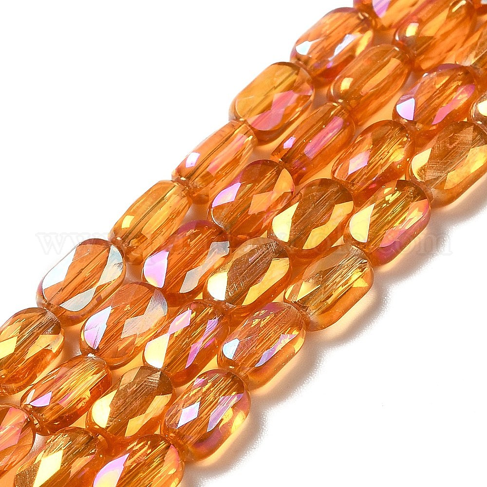 Прозрачные стеклянные бусины гальваническим пряди, с полным покрытием цвета радуги, граненые, овальные