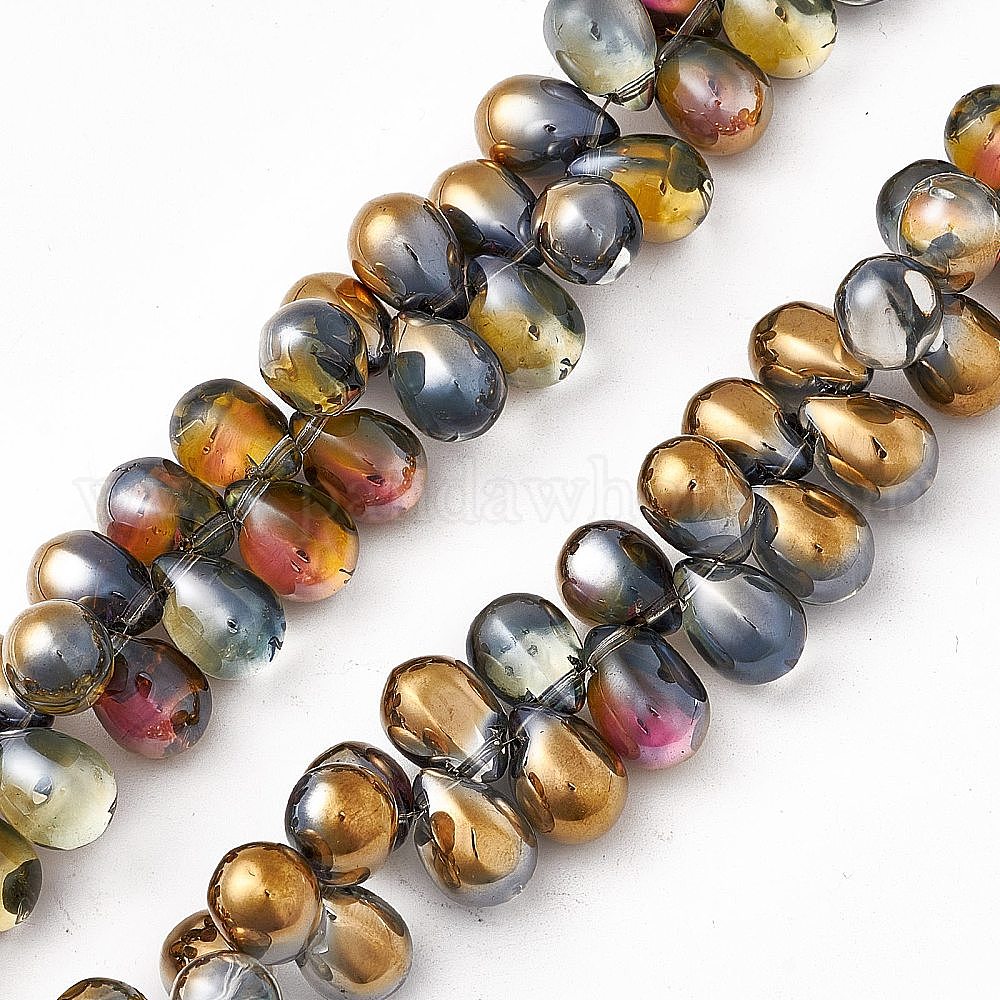 Стеклянные бусины с гальваническим покрытием , сверху просверленные бусы, с половиным покрытием цвета радуги, слеза