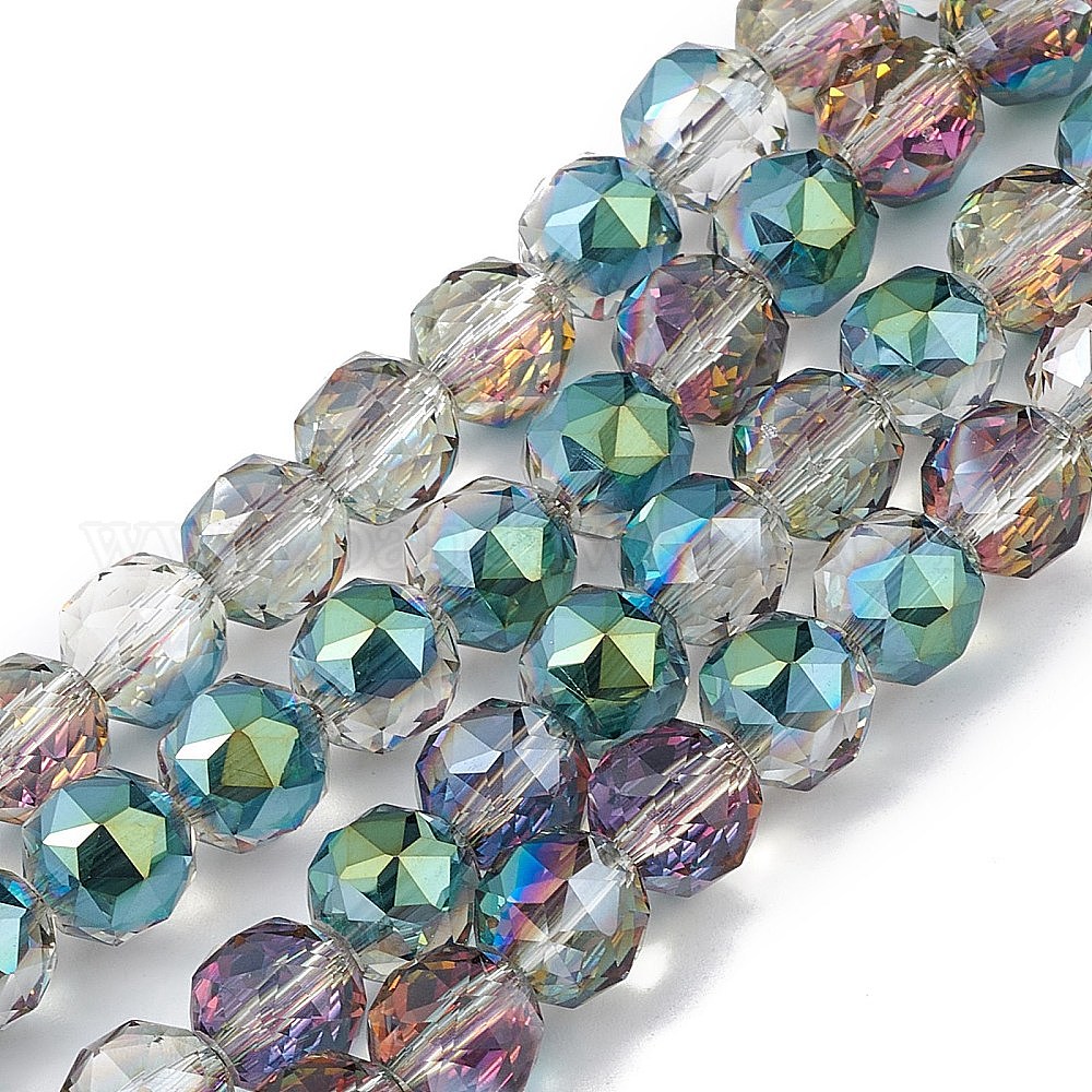 Прозрачные стеклянные бусины гальваническим пряди, граненые, круглые, с половиным покрытием