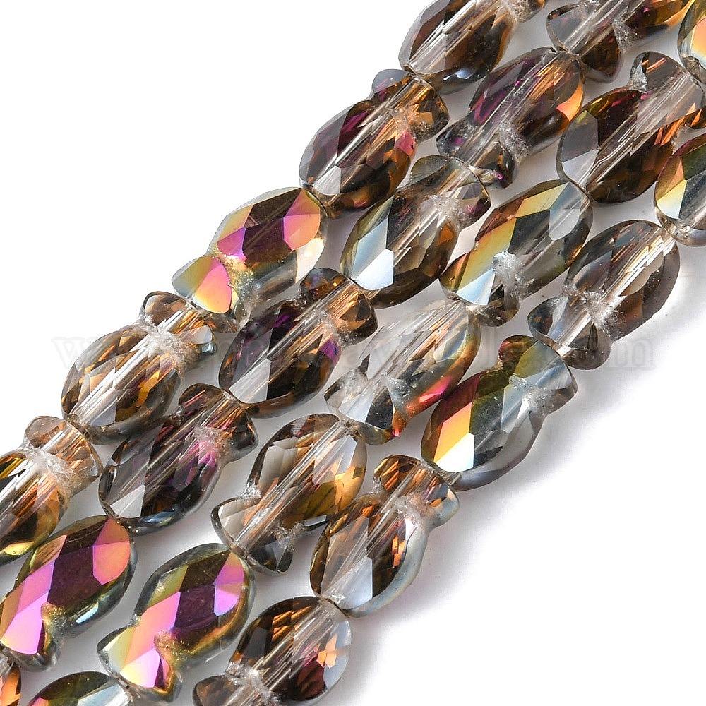 Прозрачные стеклянные бусины гальваническим пряди, с половиным покрытием цвета радуги, граненые, рыба