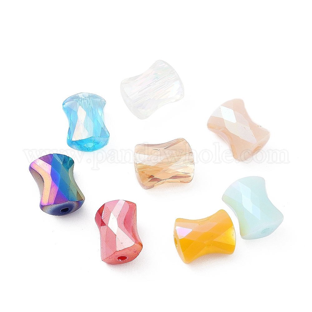 Гальванические стеклянные бусины, AB цвет, граненая подушка