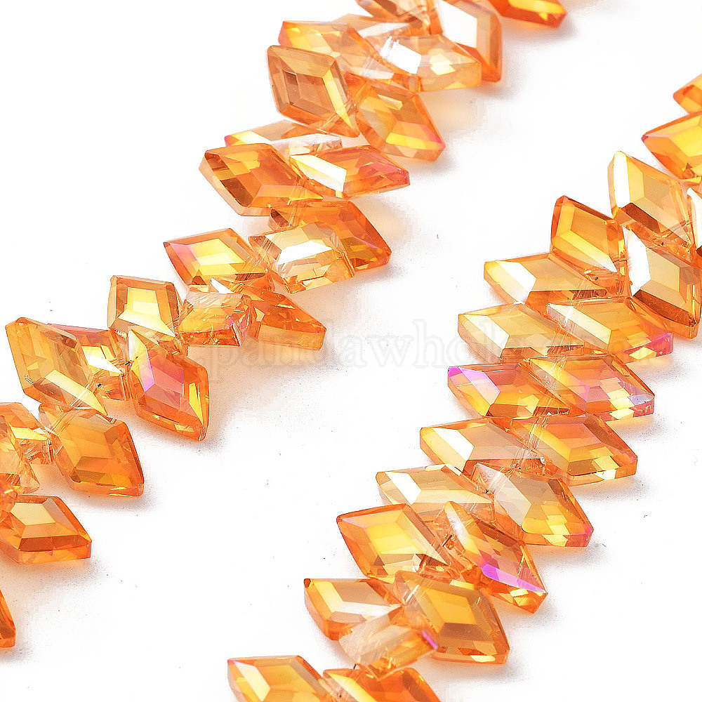 Гальванические нити стеклянных бусин в виде ромбов, граненые, с полным покрытием цвета радуги