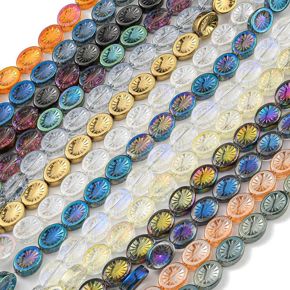 Стеклянные бусины с гальваническим покрытием , овальные с цветком