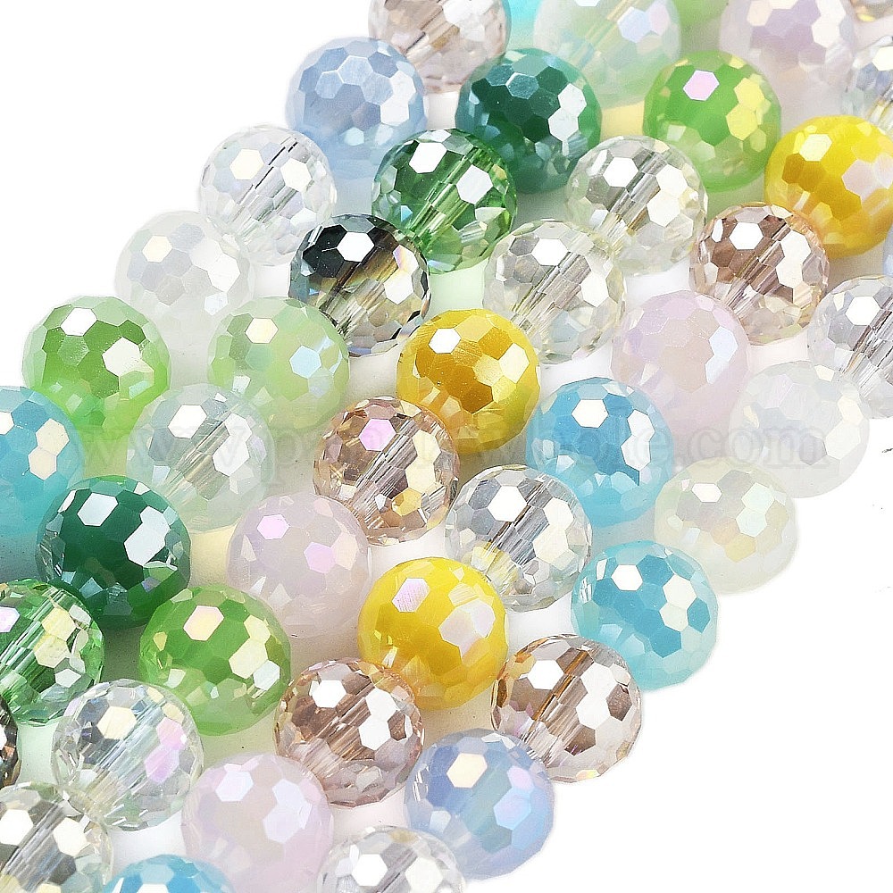 • Разноцветный Гальванические стеклянные бусины, граненые, круглые, красочный, 8 мм, отверстие : 1.4 мм, около 50~51 шт / нитка, 14.33''~14.69'' (36.4~37.3 см)
