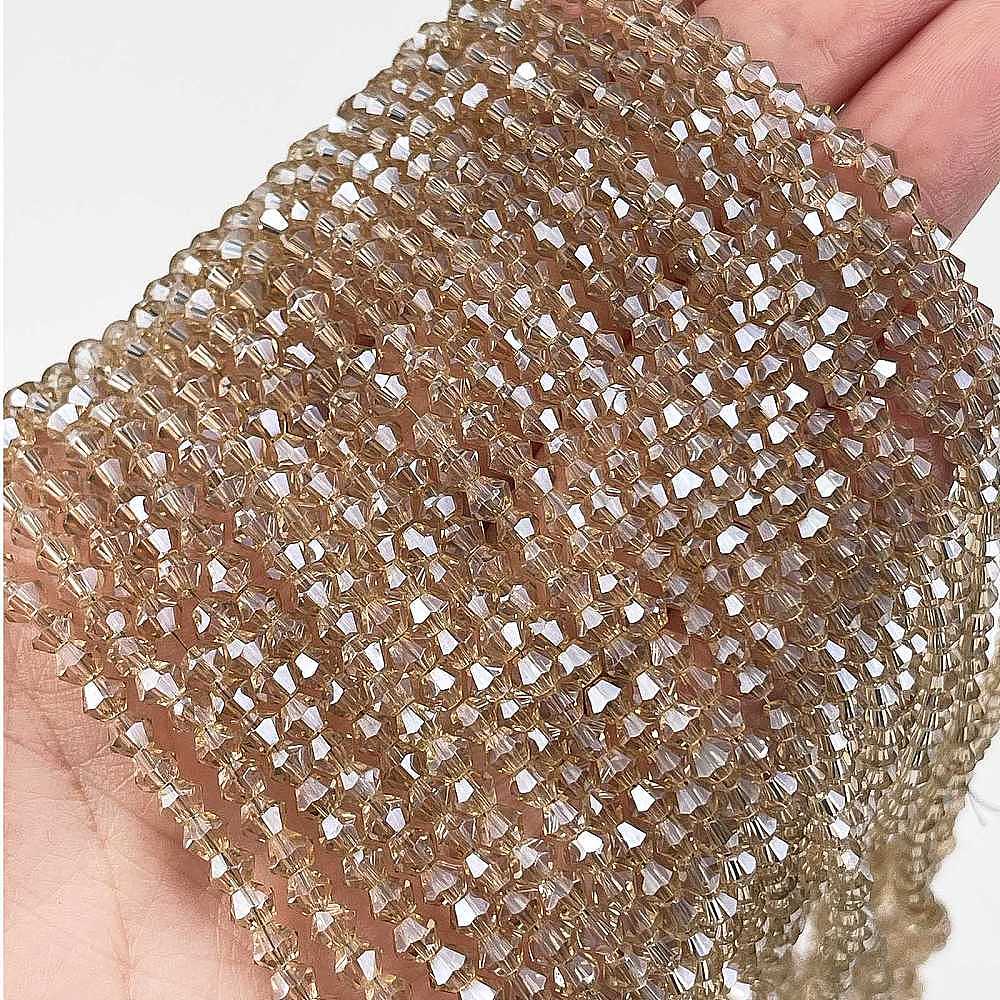 Прозрачные стеклянные бусины гальваническим пряди, гальваническое покрытие, граненые, двухконусные
